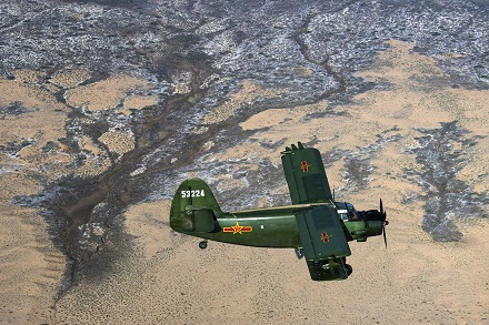 圖為官兵駕駛運-5飛機飛越西北戈壁執(zhí)行飛播造林任務(wù)。劉暢 攝