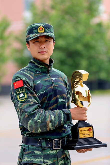 圖為屈可在2016年“勇士競(jìng)賽”國(guó)際特種兵比武中摘得“金頭盔”。郭強(qiáng) 攝