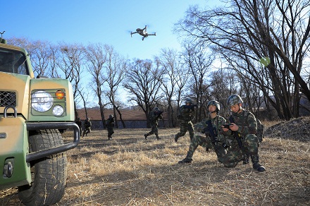 圖為官兵利用無人機對周邊地域展開偵查。陳浩 袁偉涵 攝