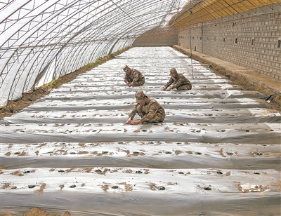 隆冬時節(jié),高原邊關(guān)寒風(fēng)呼嘯、滴水成冰。然而,新疆軍區(qū)某倉庫生產(chǎn)生活保障中心的數(shù)十座溫室大棚內(nèi),卻是蔥蘢翠綠、蔬果飄香。在常年不見綠色的邊陲,這里被官兵親切地稱作高原“綠洲”。特別是大雪封山之時,這里出產(chǎn)的蔬菜,更是邊防官兵餐桌上的新鮮食品。