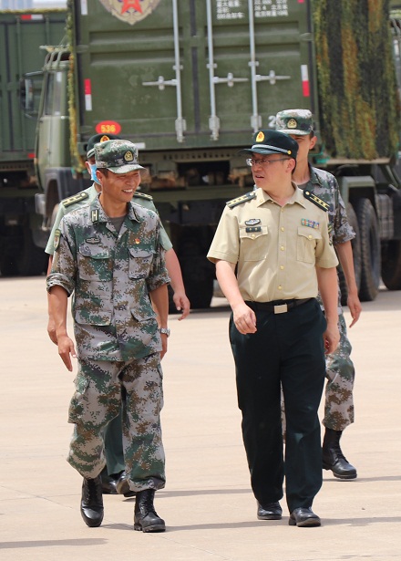 圖為李曦(右)與基層官兵探討訓(xùn)練問題。 李元昊 攝