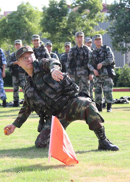 圖為李曦示范手榴彈投擲。李元昊 攝