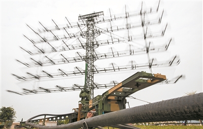 操作方艙內(nèi),各號手屏氣凝神?!胺轿弧痢?,距離××,發(fā)現(xiàn)目標!”參謀人員迅速報告“敵情”。話音未落,“敵”機對地面雷達釋放強電磁干擾,并伺機向陣地逼近。