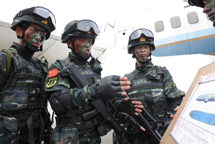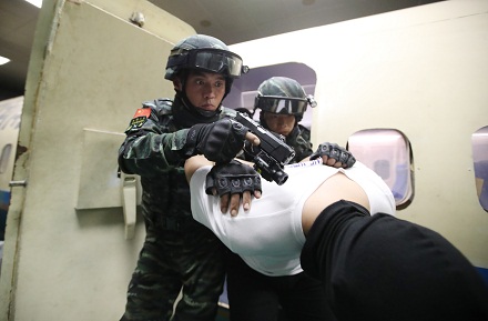 扮演歹徒的藍(lán)軍不按套路出牌,將飛機(jī)艙門(mén)用鐵絲鎖死,突擊隊(duì)員從艙外拉拽幾次無(wú)法突入。此時(shí),身為現(xiàn)場(chǎng)指揮員的彭星果斷下令,改用突擊車(chē)掛鎖拖拽、強(qiáng)行破門(mén),兵分三路突入艙內(nèi)。當(dāng)槍聲突然從身后響起時(shí),藍(lán)軍被打了個(gè)措手不及,6名“歹徒”全部被“擊斃”。
