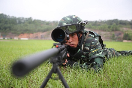 圖為彭星進(jìn)行射擊瞄準(zhǔn)訓(xùn)練。潘桂添 攝