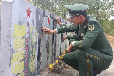 清明將至,當(dāng)武警湖南總隊邵陽支隊城步中隊官兵再次來到這里,欣喜地看到,烈士紀(jì)念碑廣場前坪干凈整潔,紀(jì)念碑碑文已重新描漆。