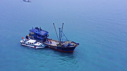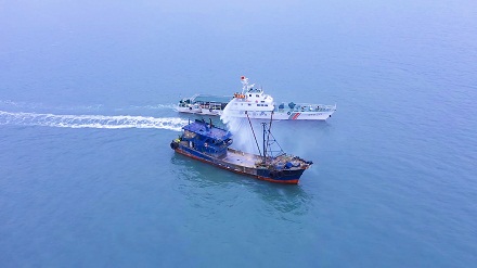 海警艦艇對嫌疑船舶進行拖帶。