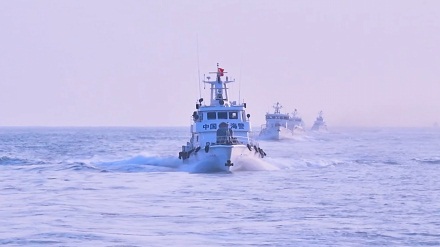 汕頭、揭陽、潮州海警局艦艇編隊單橫隊型航行。