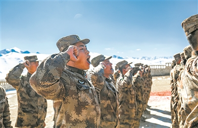 第三天,車隊盤山而上,似在云海間穿行。駛過數(shù)不清的彎道,到達海拔5200多米的界山達坂后,官兵進行短暫休整。費騰喘著粗氣,爬上界山之巔。俯瞰錦繡邊關,他的胸中豪情涌動:“70多年前,爺爺抗美援朝、保家衛(wèi)國;70多年后,我來到雪域高原、衛(wèi)國戍邊。”