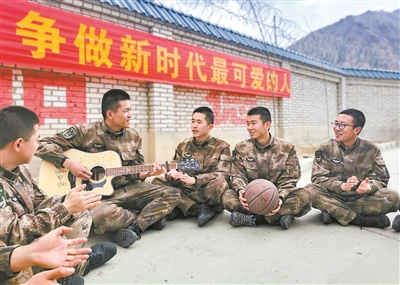 休息時間,費騰為戰(zhàn)友們彈奏吉他。