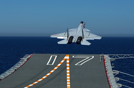 殲-15艦載戰(zhàn)斗機(jī)從山東艦起飛。李剛 攝