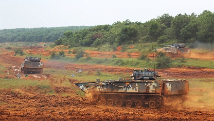 海軍陸戰(zhàn)隊步坦協(xié)同奪取縱深陣地。余文強(qiáng) 攝