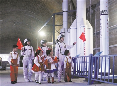 6501工程是中南地區(qū)規(guī)模最大的人工洞窟群,共有上下3層25個洞室、3個大型豎井,被譽為“中國南方地下長城”。然而,自2000年進行旅游開發(fā)以來,6501景區(qū)旅游一直處于不溫不火的狀態(tài)。2019年6月,退役軍人孫英龍主動對接當?shù)卣邮?501景區(qū)。他邀請專家進行了科學論證,決定依托得天獨厚的洞窟資源和有利的自然地貌,打造航空航天國防教育基地,與研學旅行進行高度融合,吸引青少年走進景區(qū)。