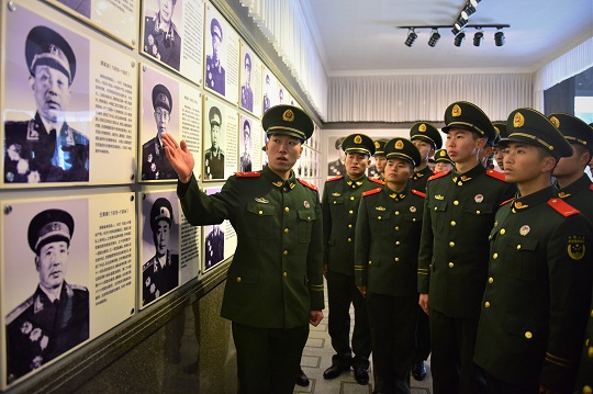 圖為武警井岡山中隊(duì)紅色講解員在北山烈士陵園展館,為新兵介紹從井岡山走出的開國將帥。 萬立恒 攝