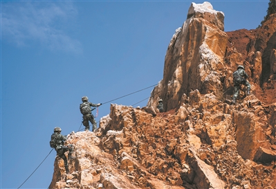 混編作戰(zhàn)小組隊(duì)員在廠房內(nèi)索降突襲。