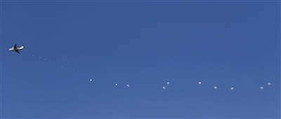 抵達(dá)預(yù)定空域后,官兵接連躍出艙門(mén)。
