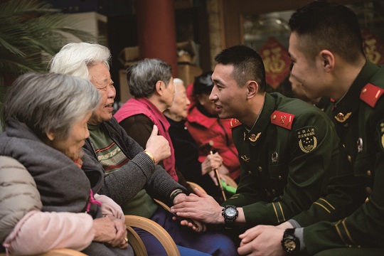 圖為武警上海總隊(duì)執(zhí)勤第四支隊(duì)執(zhí)勤十中隊(duì)官兵到黃浦老年公寓開(kāi)展服務(wù)。揭亦凡 攝
