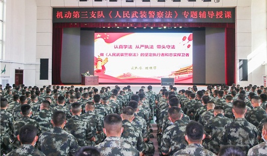 圖為武警某部組織武警法輔導(dǎo)授課。