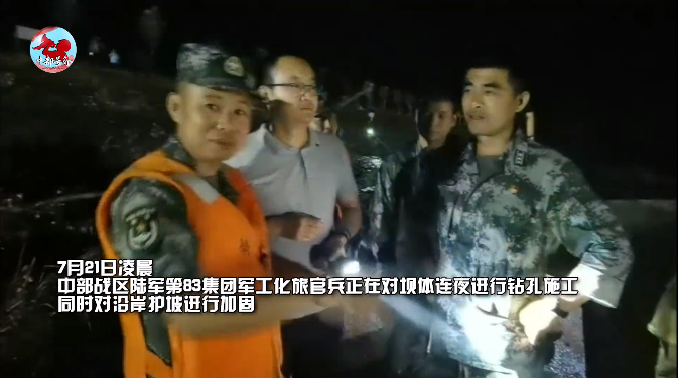 20日凌晨,河南省洛陽市伊川縣平等鄉(xiāng)馬回營村伊河攔水壩出現(xiàn)險情。按照中部戰(zhàn)區(qū)命令,第83集團軍某工程防化旅立即啟動預(yù)案,炸藥、雷管、救生舟艇等爆破和防洪器材緊急裝車,75名官兵、15臺裝備車輛在最短時間內(nèi)集結(jié)完畢,火速馳援洛陽市伊川縣任務(wù)區(qū),執(zhí)行爆破分洪任務(wù)。