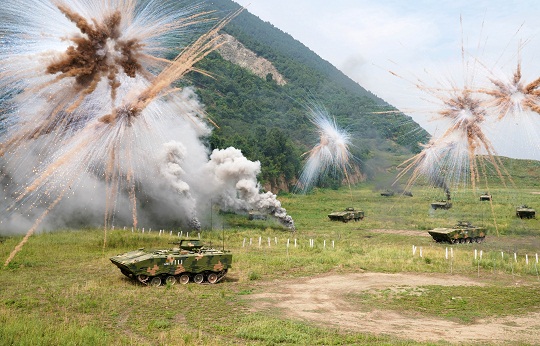 一陣尖銳的戰(zhàn)斗警報中,一場實(shí)戰(zhàn)化背景下全員全裝戰(zhàn)斗演練再次打響。鐵甲轟鳴,濃煙滾滾。行軍途中,“紅一連”官兵接連成功處置多個敵情,提前30分鐘齊裝滿員到達(dá)預(yù)定集結(jié)地域。