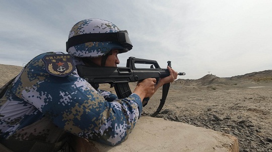 圖為“晴空”項目參賽隊員進行自動步槍對隱顯目標(biāo)射擊。徐翥 攝