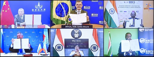 本報(bào)訊 見習(xí)記者韓瀟 通訊員張未 記者從國家航天局獲悉,2021年8月18日,國家航天局局長(zhǎng)張克儉與巴西航天局局長(zhǎng)卡洛斯·莫拉、俄羅斯國家航天集團(tuán)總經(jīng)理羅戈津、印度空間研究組織主席西萬和南非國家航天局局長(zhǎng)穆薩米等金磚國家航天機(jī)構(gòu)負(fù)責(zé)人進(jìn)行了視頻會(huì)議,并簽署了《關(guān)于金磚國家遙感衛(wèi)星星座合作的協(xié)定》。