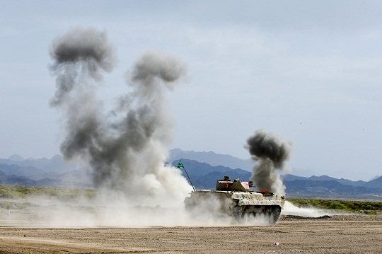 圖為中國參賽隊陸軍代表隊對步戰(zhàn)車目標(biāo)進(jìn)行實彈射擊。王俊 攝