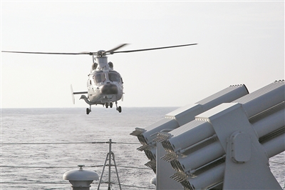 “上級通報,我海區(qū)有‘敵’潛艇活動,命我艦與直升機協(xié)同對其展開搜索與攻擊?!甭劻疃鴦?,艦機迅速進行協(xié)同訓練。在直升機引導下,艦艇對水下潛艇展開有效攻擊……