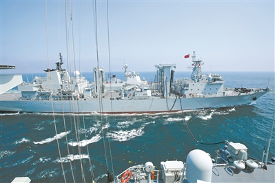 開展海上補給訓練。