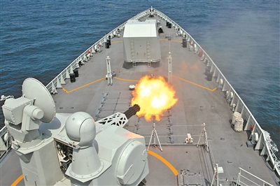“上級命我艦立即對‘敵’灘頭陣地實施火力打擊!” 艦艇編隊剛抵達訓練海域,某艦就接到任務,官兵立即進入戰(zhàn)斗狀態(tài)?!爸髋陂_始射擊?!币宦暳钕?,主炮迅速鎖定目標并實施打擊。此時,雷達戰(zhàn)位發(fā)現(xiàn)又有空中目標快速接近艦艇?!案迸诮M織射擊!”指揮員研判戰(zhàn)場態(tài)勢后,果斷下達攻擊命令。隆隆炮聲中,來襲目標被擊中,空中威脅解除。