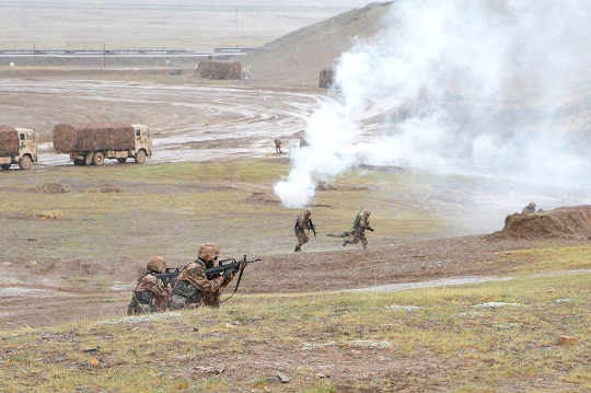 圖為車隊(duì)行進(jìn)間組織防衛(wèi)演練。李東東 攝