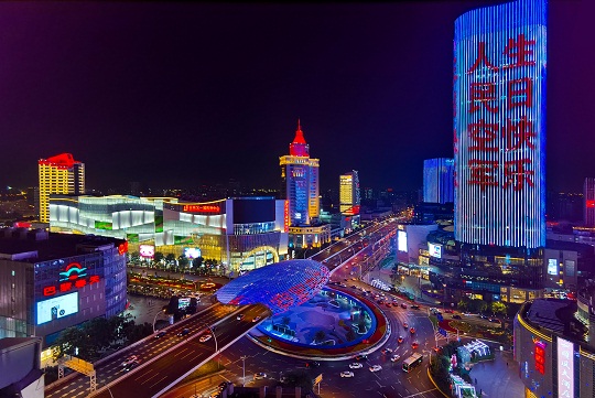 11月9日晚,為慶祝人民空軍成立72周年,上海五角場商圈“彩蛋”燈光演繹系統(tǒng)和周邊大樓樓體屏聯(lián)動上演以“人民空軍忠于黨”為主題的燈光秀,吸引眾多市民駐足觀看。