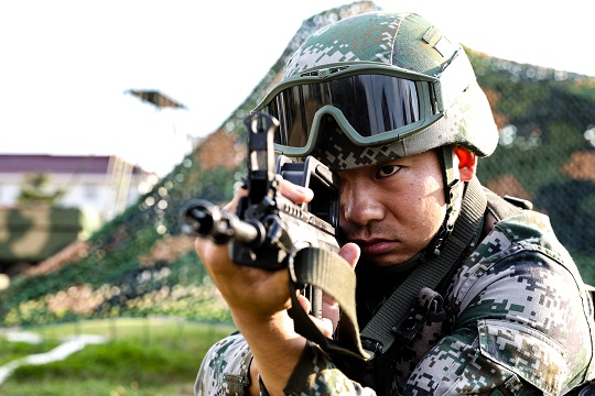 圖為孫金龍正在進(jìn)行據(jù)槍訓(xùn)練。李森 攝