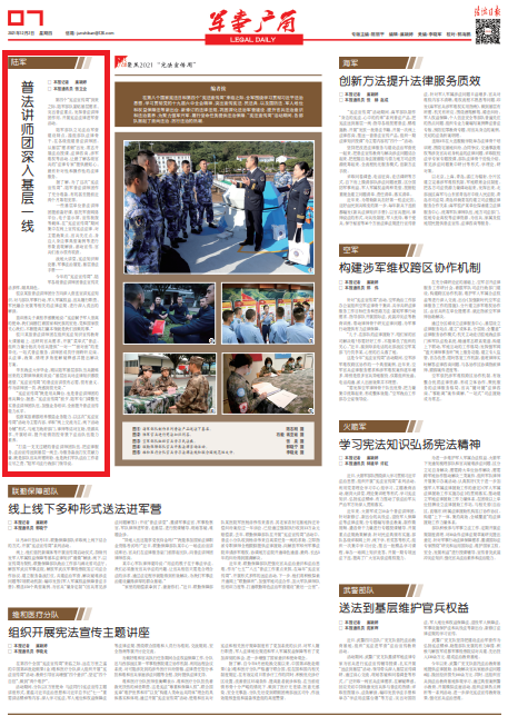 今年的“憲法宣傳周”,陸軍各級普法講師團普法宣傳靈活多樣,頗具特色。