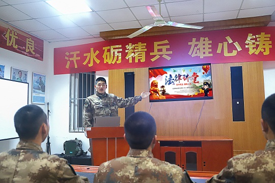 駐京某旅普法講師團分方向深入營連宣講憲法知識,對與部隊軍事行動、軍人軍屬權(quán)益、官兵履行職責(zé)、軍民融合發(fā)展等相關(guān)的法律法規(guī),進行深入淺出的解讀。
