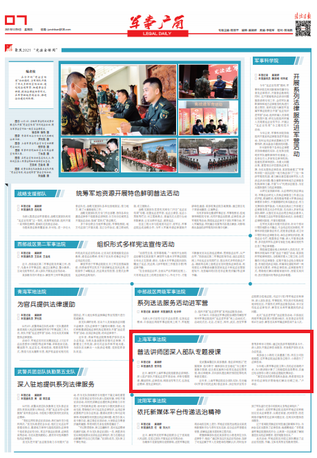 近年來,上海軍事法院結(jié)合部隊(duì)實(shí)際,先后編印《軍營中的民法典》普法讀本、訴訟知識宣傳手冊等多種學(xué)習(xí)資料;通過發(fā)放涉軍維權(quán)聯(lián)系卡片,深入部隊(duì)開展法律咨詢服務(wù),有效維護(hù)部隊(duì)官兵合法權(quán)益。