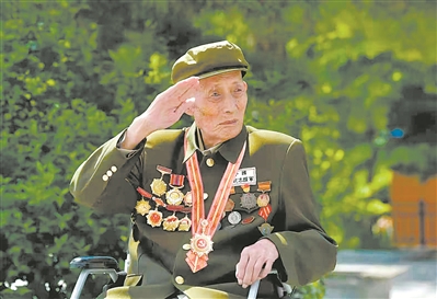 捐贈前夜,在丹東光榮院,97歲的孫景坤坐在輪椅上,撫摸著掛在舊軍裝上的一枚枚獎章。