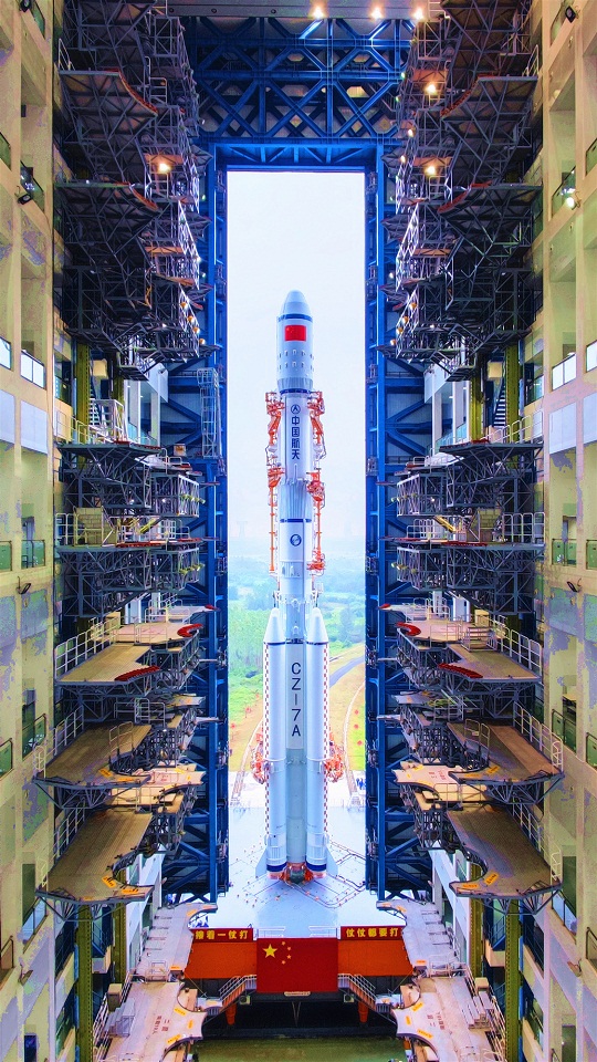 12月23日,中國(guó)文昌航天發(fā)射場(chǎng),距離大海約800米的發(fā)射平臺(tái)上,高大挺拔的長(zhǎng)征七號(hào)改遙三運(yùn)載火箭劍指蒼穹。乳白色的箭體上,一面鮮紅的五星紅旗圖案格外醒目。
