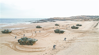 圖①:海軍陸戰(zhàn)隊(duì)某旅展開實(shí)戰(zhàn)化搶灘登陸演練。姜 順攝