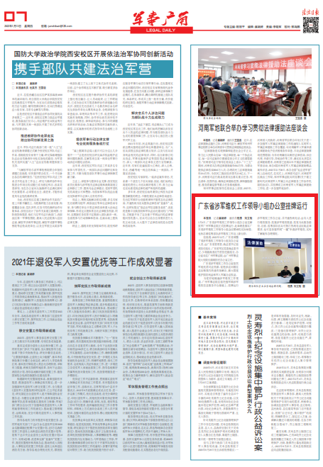 廣東省涉軍維權(quán)工作辦公室依托軍地優(yōu)質(zhì)司法資源,促使涉法問題在法治框架內(nèi)快速有效解決,最大限度維護國防利益和軍人軍屬合法權(quán)益。
