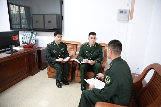 圖為部隊官兵正在咨詢法律問題。程勇 劉文敬 攝