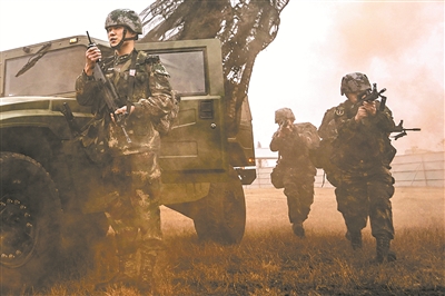 突然,新的“敵”情傳來(lái):“巡邏哨兵遭小股‘?dāng)程亍u擊……”指揮員對(duì)戰(zhàn)場(chǎng)態(tài)勢(shì)進(jìn)行判斷后,迅即派警戒小組展開搜捕。