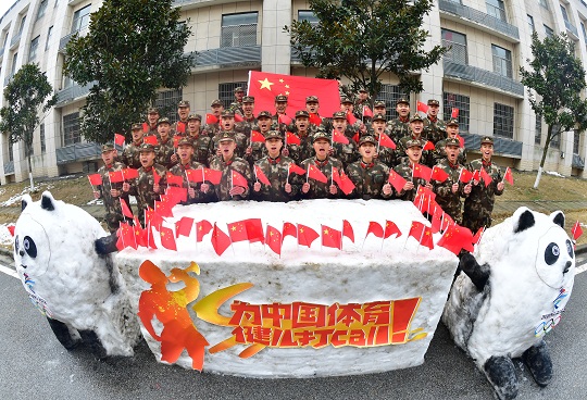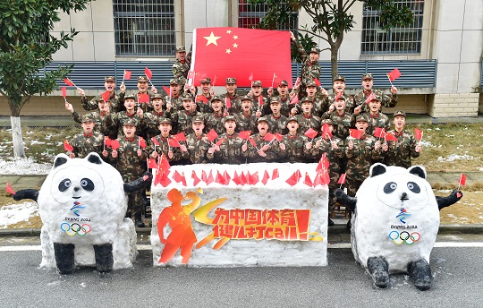 “為中國體育加油!為奧運健兒加油……”2月8日,武警湖北總隊執(zhí)勤支隊官兵在休息時間用積雪堆出吉祥物冰墩墩,手持國旗集體打卡,為冬奧健兒加油,鼓勵大家學(xué)習(xí)奧運精神,矢志練兵備戰(zhàn)。