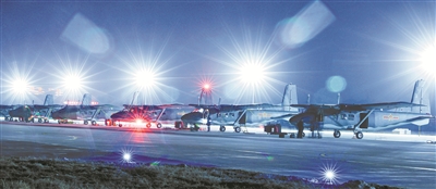 圖③:夜幕下,戰(zhàn)機(jī)列陣,待命出征。