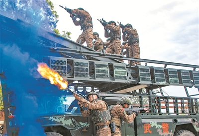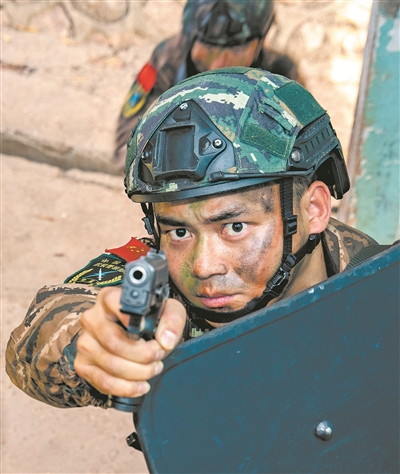 2月上旬,桂中腹地。一棟廢棄樓房內(nèi),武警特戰(zhàn)隊(duì)員正在進(jìn)行隱蔽突擊訓(xùn)練?!跋旅婵次沂痉叮 爆F(xiàn)場組織教學(xué)的是武警廣西總隊(duì)機(jī)動支隊(duì)參謀邱健。他的動作精準(zhǔn)迅捷,勢如猛虎,贏得官兵一片叫好聲。