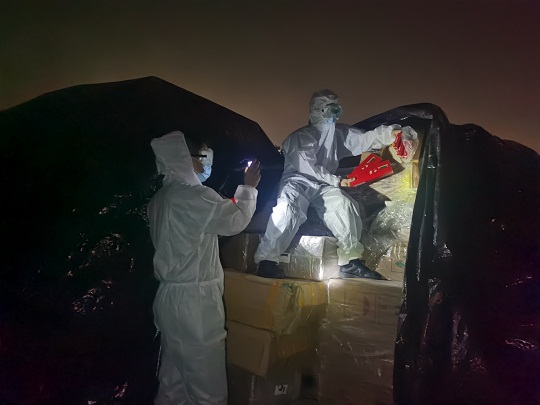 3月14日清晨6時(shí)許,該局鐵山港工作站接群眾報(bào)警稱,在北海市鐵山港區(qū)興港鎮(zhèn)附近海域有1艘擱淺木質(zhì)船舶,其上有大量貨物且被篷布遮蓋,疑為走私船舶。接警后,該站迅速調(diào)派兩隊(duì)執(zhí)法員對(duì)相關(guān)海域進(jìn)行海陸聯(lián)合搜查。上午9時(shí)許,海警執(zhí)法員在興港鎮(zhèn)淡水口村附近海域發(fā)現(xiàn)該艘擱淺木船,隨即對(duì)現(xiàn)場進(jìn)行封控,并通知防疫部門進(jìn)行防疫消殺。當(dāng)日晚8時(shí)許,經(jīng)防疫消殺后現(xiàn)場檢查,木船上裝載有“中華”“荷花”“芙蓉王”等品牌香煙一批,現(xiàn)場未發(fā)現(xiàn)該木船及所裝載香煙的任何相關(guān)合法手續(xù),亦無人對(duì)木船及香煙主張權(quán)利。因涉嫌走私,海警執(zhí)法員依法現(xiàn)場查扣涉案木船1艘,查獲涉嫌走私香煙12576條。