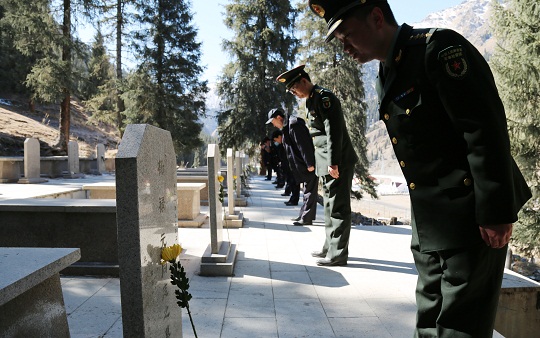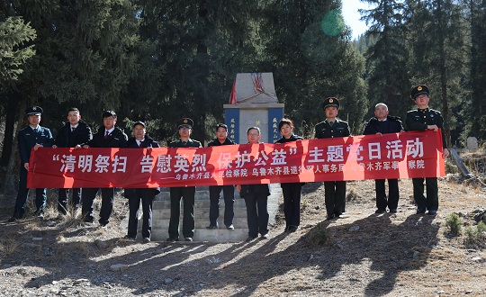 清明時節(jié),解放軍烏魯木齊軍事檢察院聯(lián)合新疆維吾爾自治區(qū)烏魯木齊縣人民檢察院檢察官,來到天山后峽216國道旁一處零散烈士墓,開展“清明祭掃、告慰英烈、保護公益”主題黨日活動。
