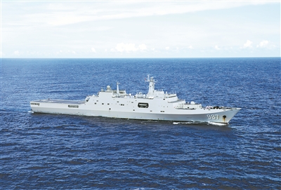 圖①:五指山艦在赴湯加運(yùn)送救援物資途中破浪前行。喬晨曦 攝