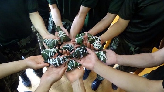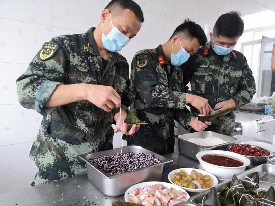 傍晚,結(jié)束任務(wù)的執(zhí)法員們在餐廳自己動手包粽子?!斑@是我第一次學(xué)著包粽子,雖然包得奇形怪狀,但是我覺得特別有意義。”執(zhí)法員小李笑著說。