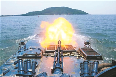 圖③:海軍陸戰(zhàn)隊某旅組織跨晝夜海上實彈射擊訓練,一批新馭手、新射手在復雜海域經受考驗。圖為步戰(zhàn)車對岸上目標進行射擊。簡貴洋 攝